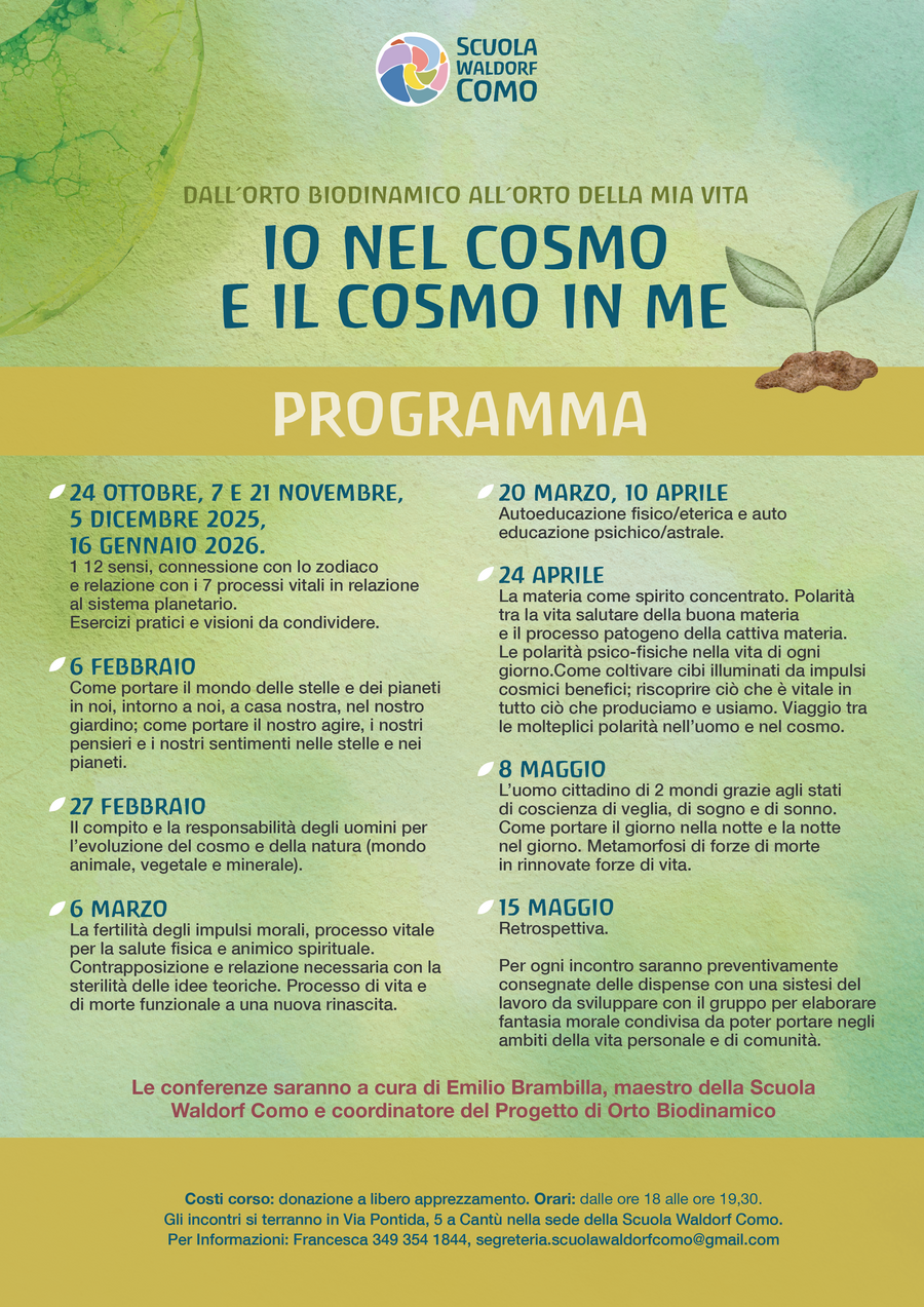 Per ulteriori informazioni: Francesca 349 3541844 o segreteria@scuolawaldorfcomo.it oppure maestro Emilio 333 6956654