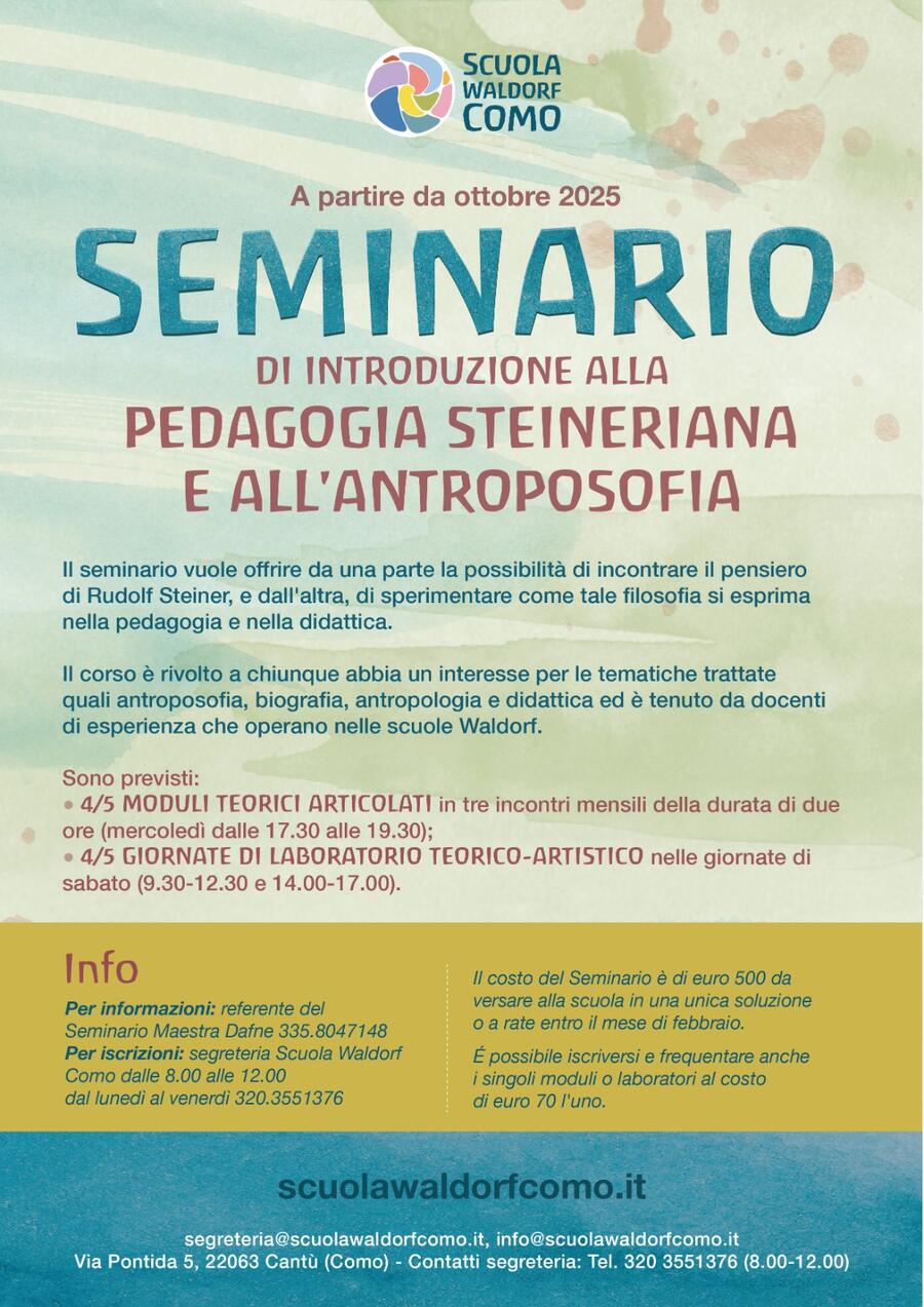 Il seminario vuole offrire da una parte la possibilità di incontrare il pensiero di Rudolf Steiner, e dall'altra, di sperimentare come tale filosofia si esprima nella pedagogia e nella didattica.